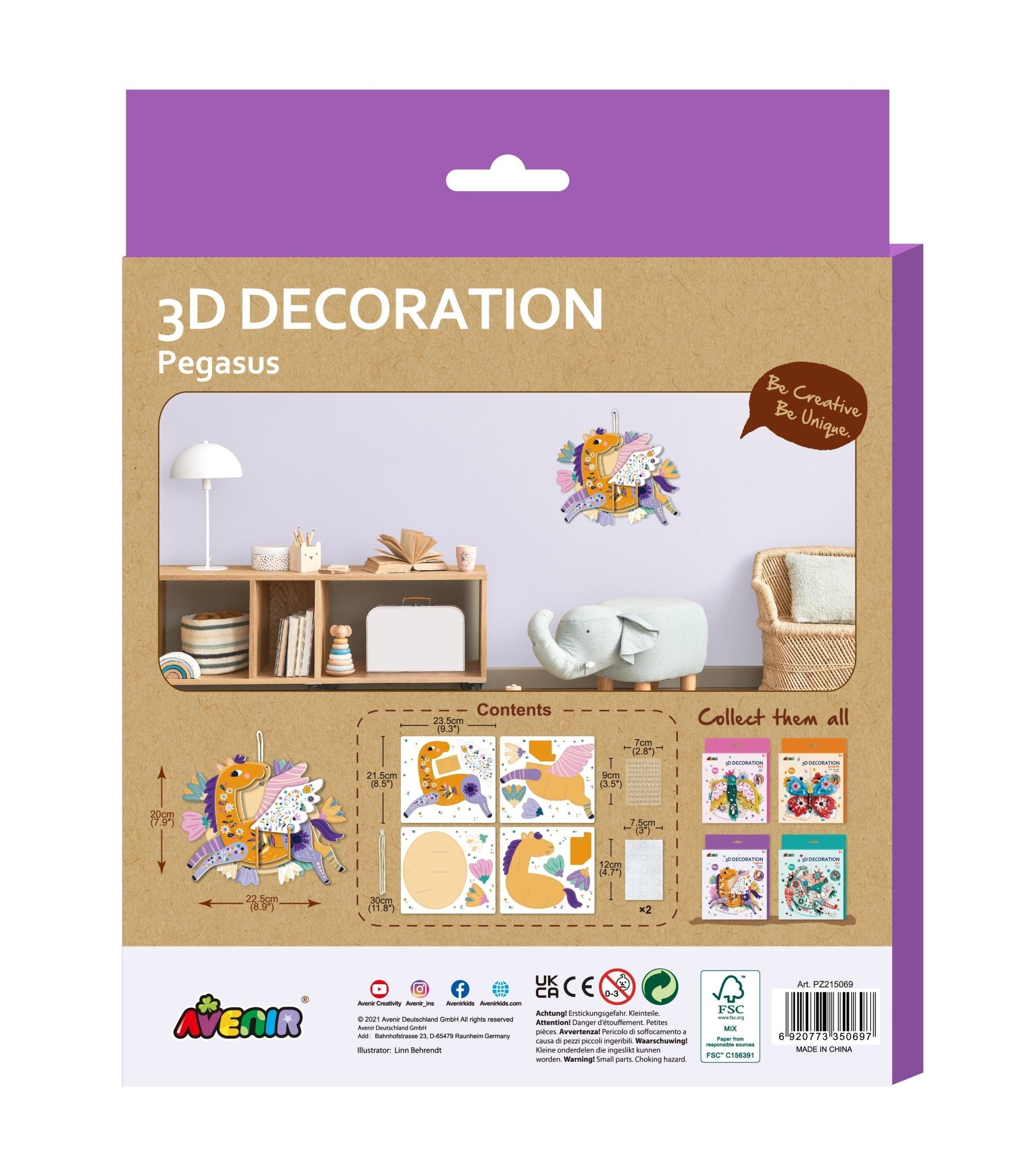 Build, colour, and decorate your space! These adorable 3D kits (Bird, Butterfly, Cat, or Pegasus) are perfect for little crafters to create their own hanging decorations.