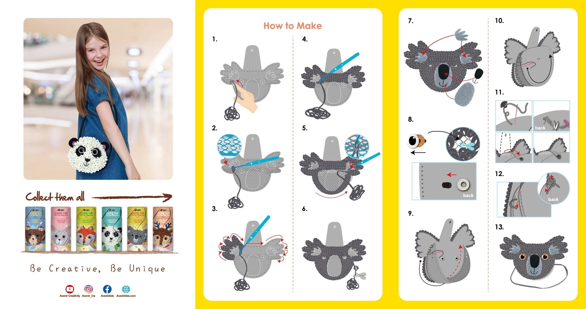 Just pull the loops and stitch using the pre-cut felt, fabric, thread, and plastic needle??no extra supplies needed!