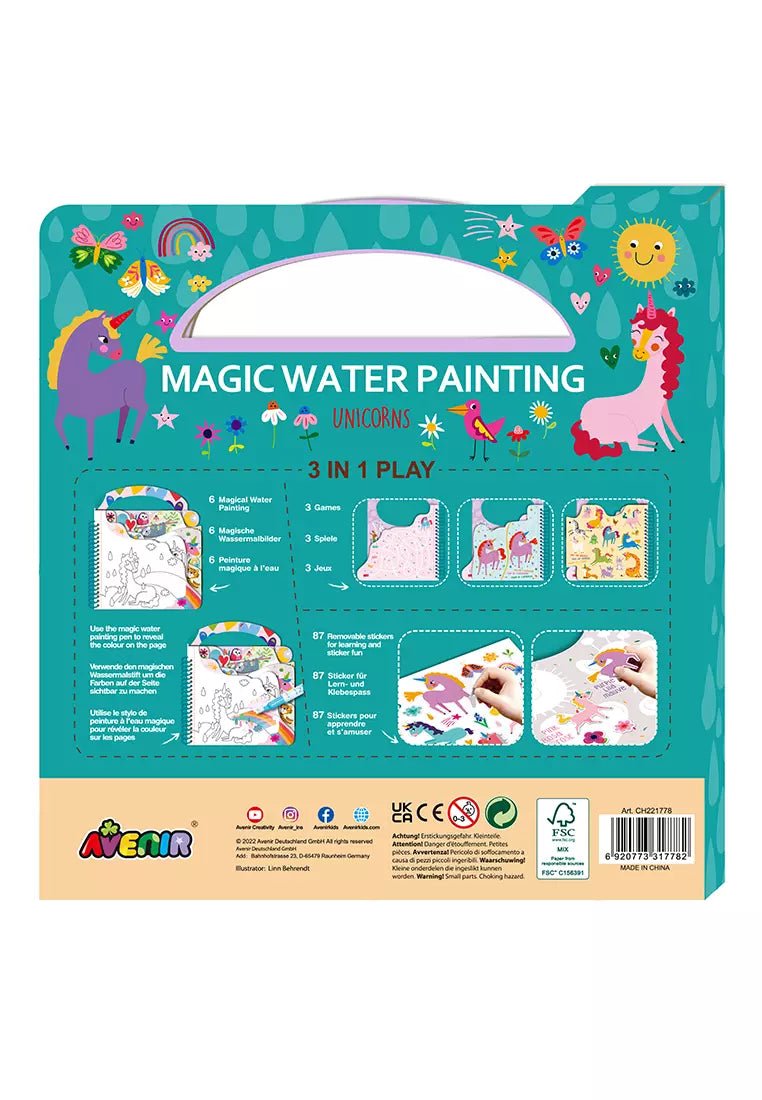 Take the fantasy unicorn-themed, no-mess water painting activities anywhere with this Magic Water Painting book.
