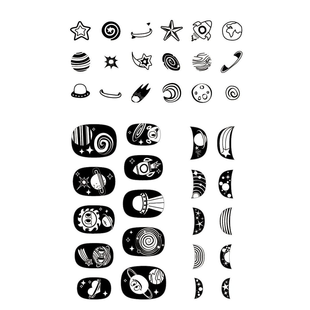 A pack of 38 space themed glow in the dark nail stickers.