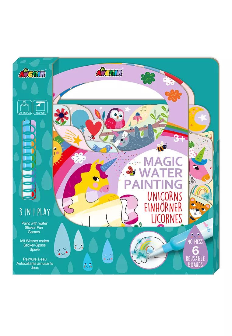 Take the fantasy unicorn-themed, no-mess water painting activities anywhere with this Magic Water Painting book.