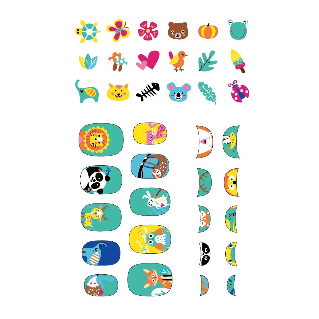 Small Nail Stickers – Animals with Glitter (38 pcs)