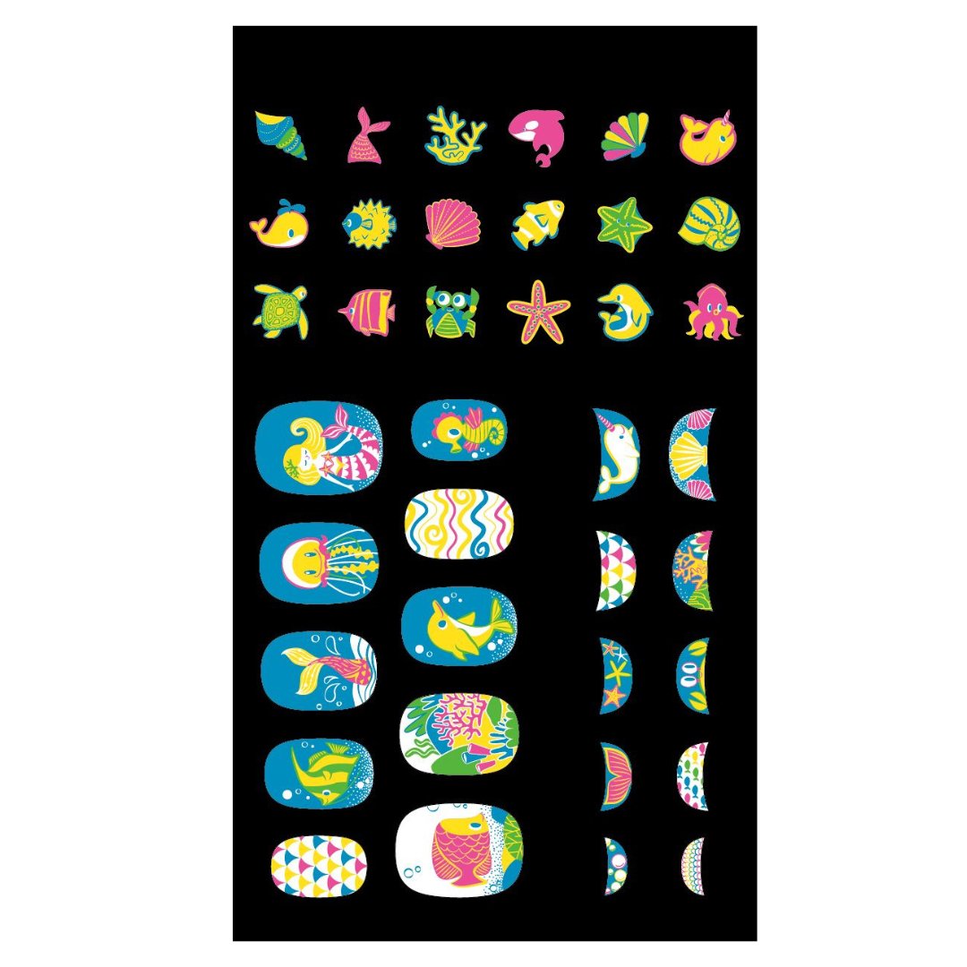 A pack of 38 under the sea themed fluorescent nail stickers.