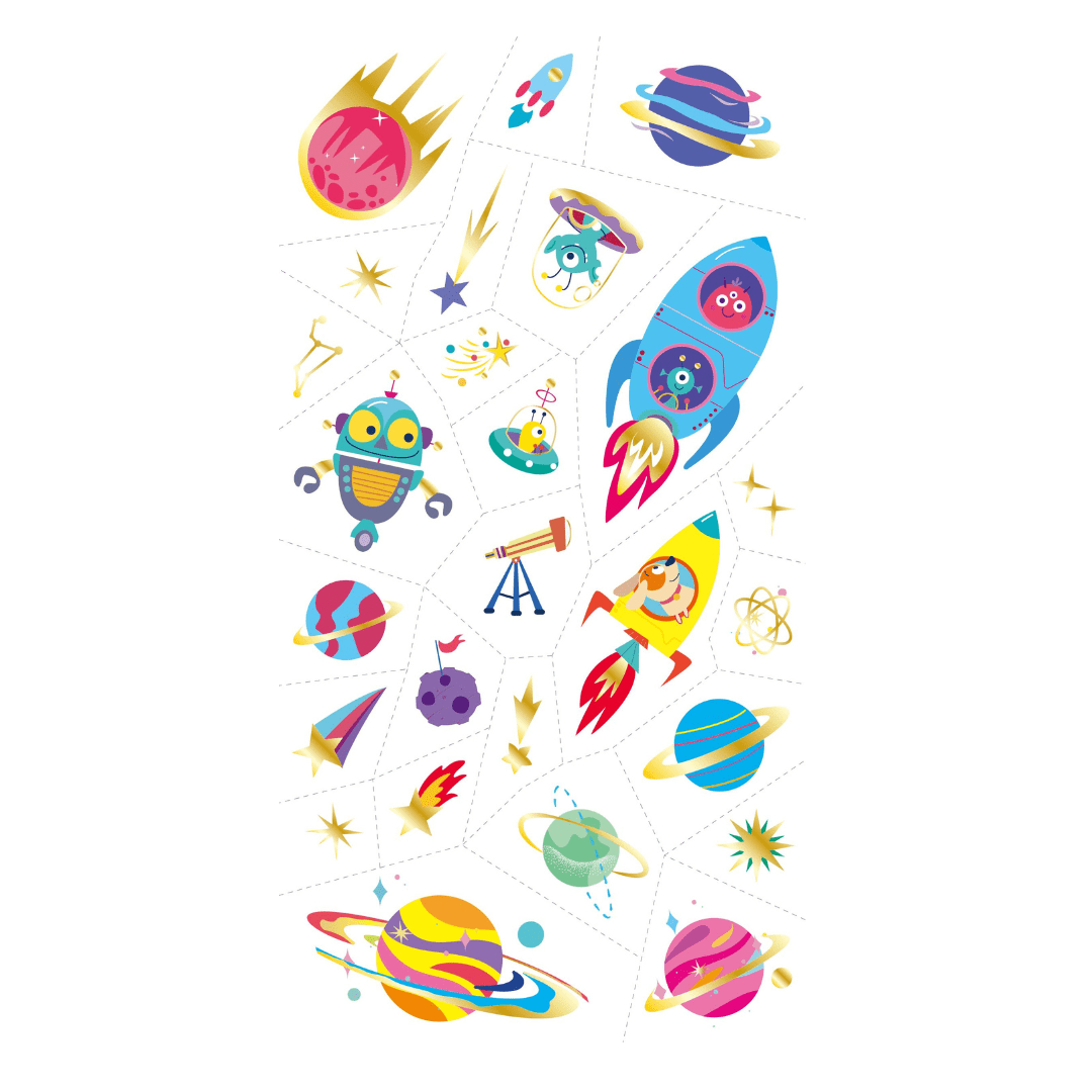This great pack of silvery tattoos features plenty of space designs for every space lover.